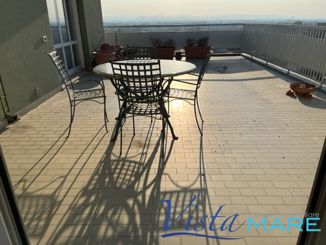 BELLARIA - In posizione centralissima, a pochi passi sia dal viale pedonale che dalla spiaggia, esclusivo appartamento all'ultimo piano dotato di ampia vista panoramica e di terrazzo di notevole metratura, unico ed esclusivo per la zona centralissima in cui è ubicato l'immobile. L'appartamento si presenta con ambienti ben definiti e gode di finiture di pregio e di ampi spazi che si prestano anche per una diversa distribuzione degli ambienti. Ingresso, cucina separata, luminosa sala da pranzo con camino, ampio disimpegno attrezzato, due camere da letto, due bagni. Ogni camera si affaccia sull'ampio terrazzo perimetrale. Al piano terra è presente il garage e l'immobile dispone anche di posto auto in area condominiale.